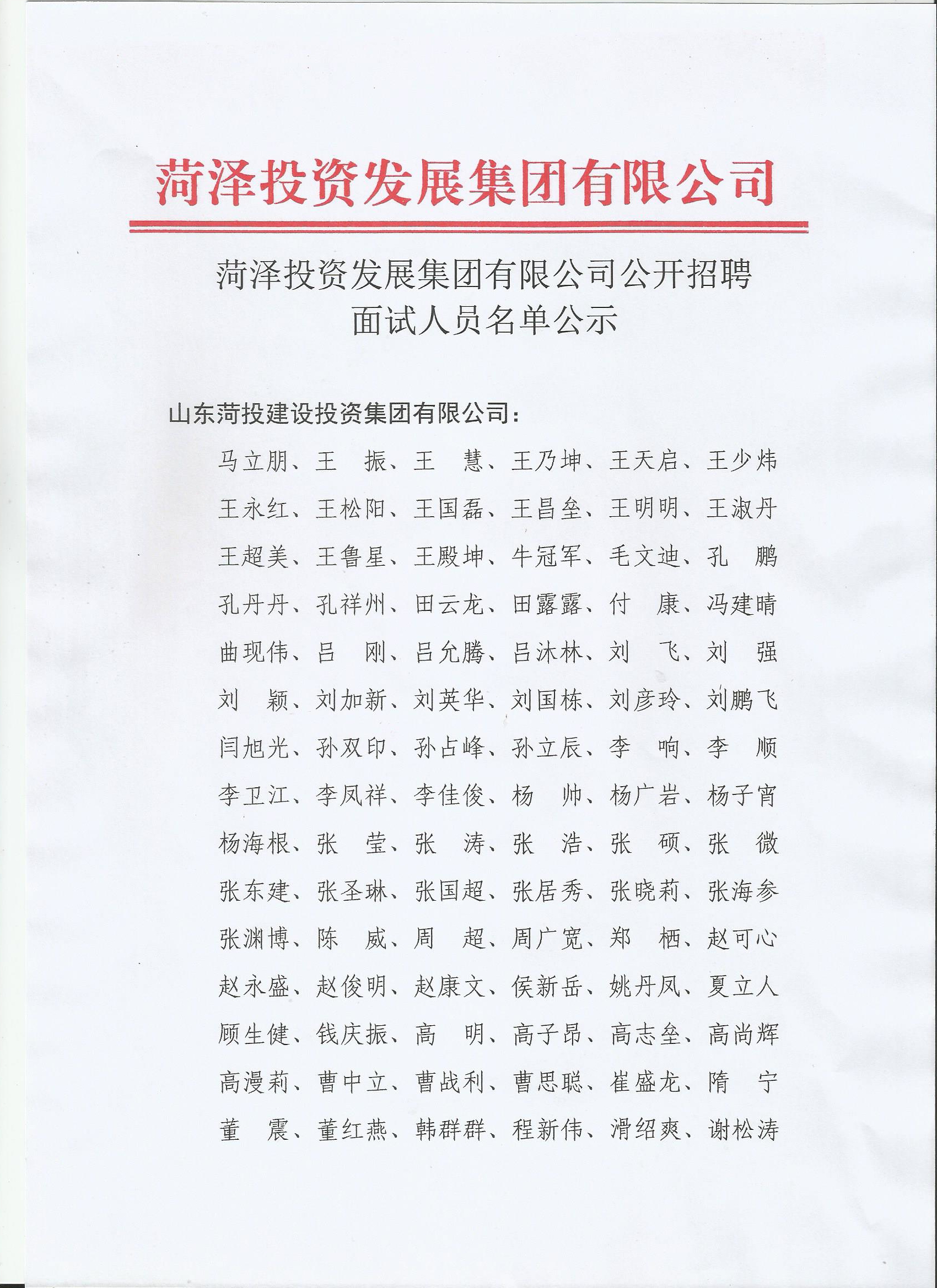 菏澤投資發(fā)展集團有限公司公開招聘面試人員名單公示